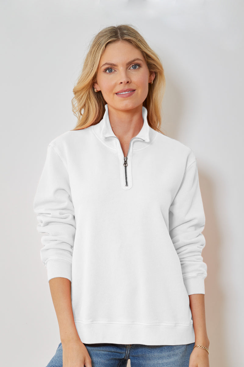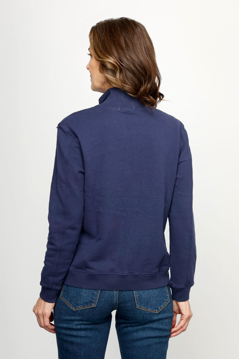Laid back style is having a moment.  Fashioned from the softest terry, the ½ Zip Funnel sweatshirt is easy to wear and love. It features a sporty zip-collared pullover and detailed trimmings around the neck opening and zipper.