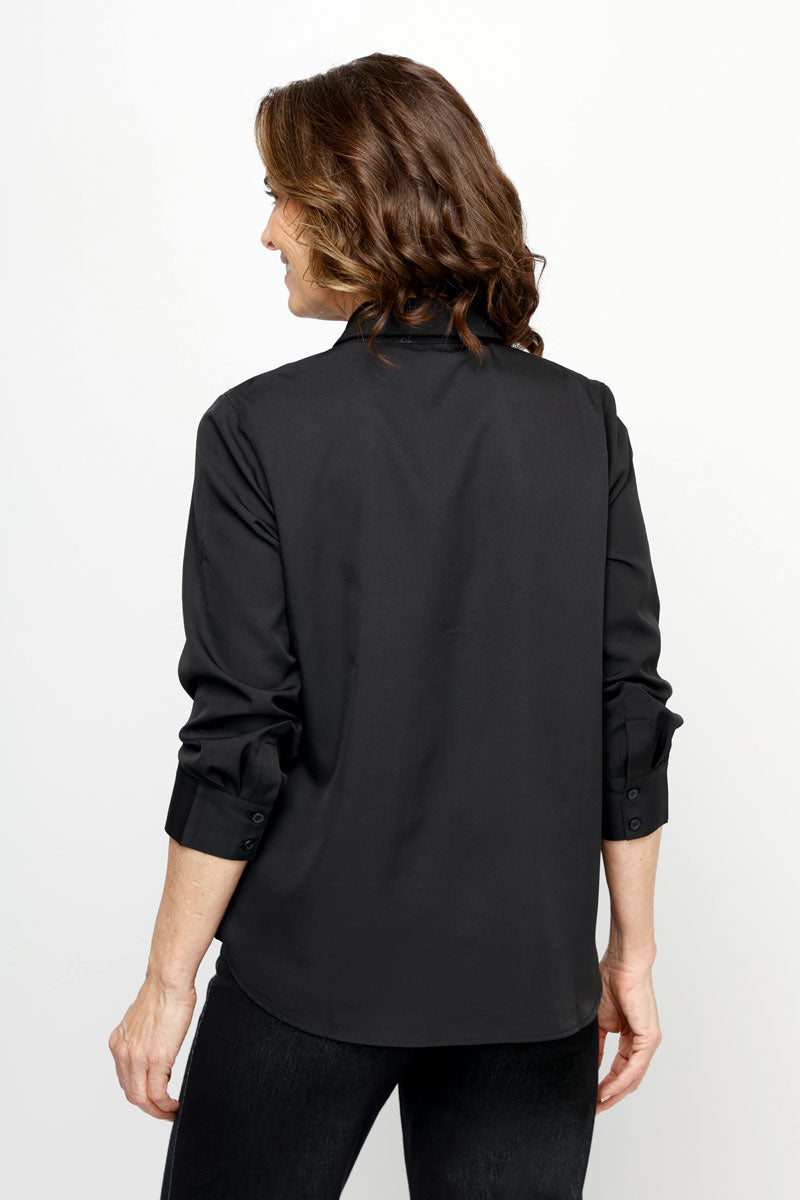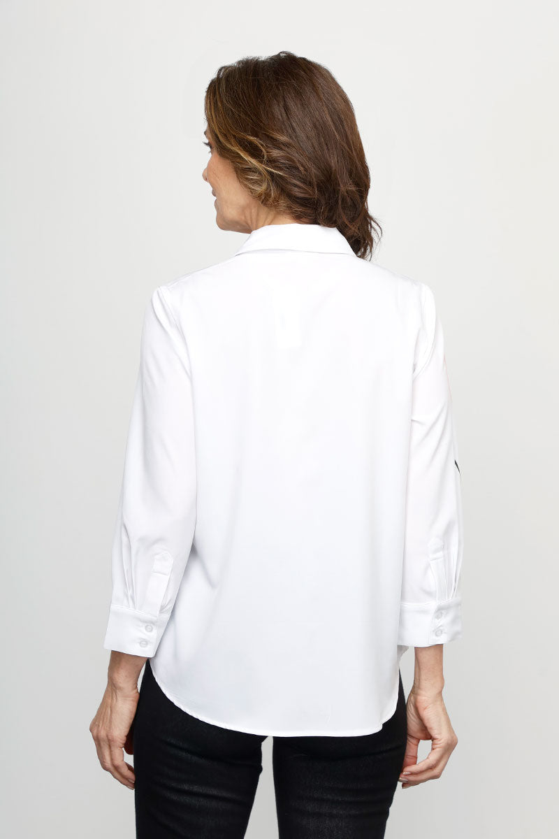 Introducing the Beau Chemise Carnation Sleeve Blouse—where timeless tailoring meets artistic flair. Crafted from a luxuriously soft and silky yet machine washable fabric, this classic button-down features a show-stopping screen-printed carnation design on a single sleeve that sets it apart. A single front pocket adorned with four decorative buttons adds unexpected charm and dimension. The flattering cut makes it effortlessly versatile, whether you're dressing it up or down.