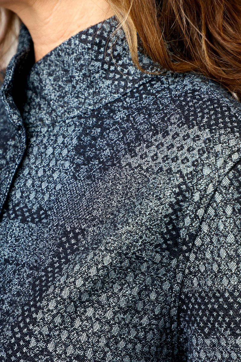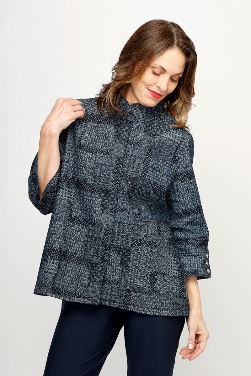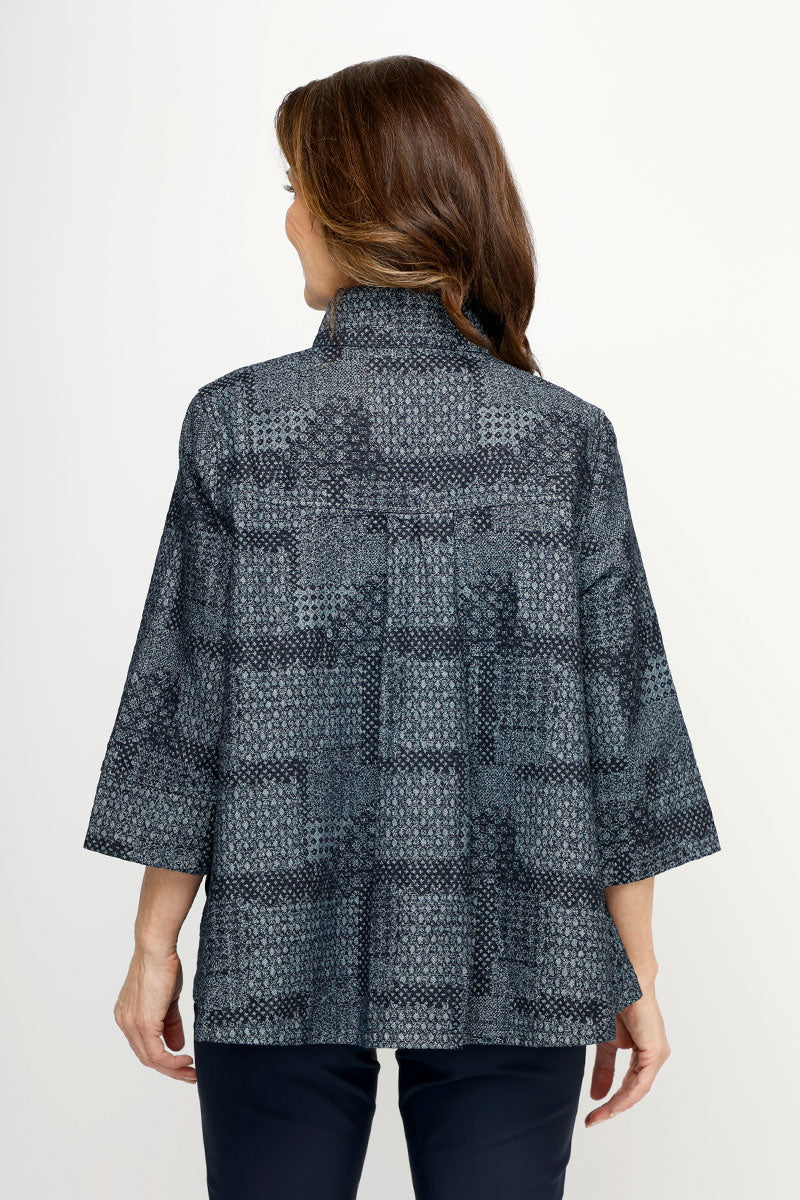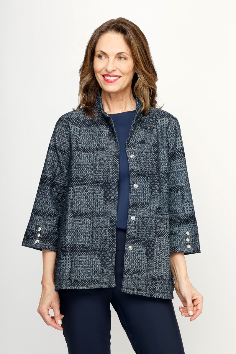 The dressed up denim jacket is here!  A cute swing silhouette meets textured yet refined tonal denim in the Patchwork Denim Jacket.  Featuring a convertible collar, and hidden snap placket, this is a topper to dress up or down.  Whether paired with your favorite denim or more polished pant, it's versatile and comfortable.