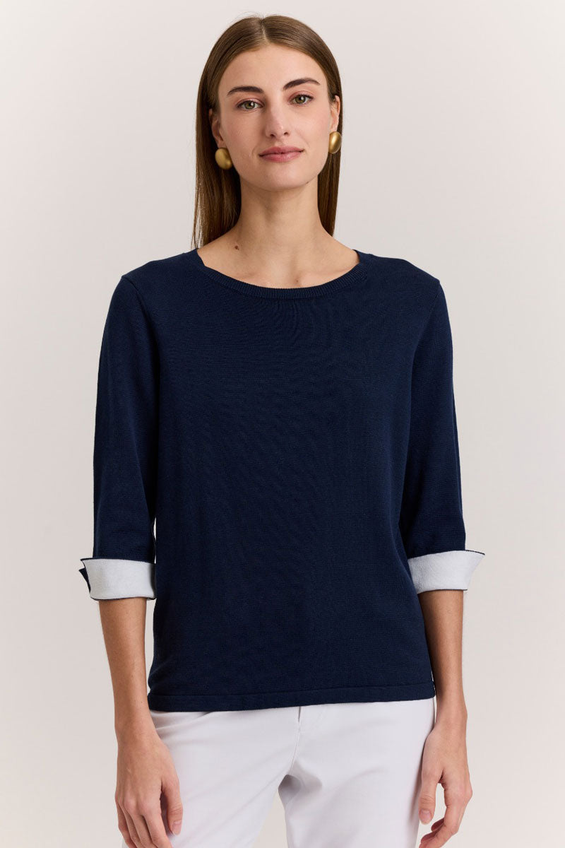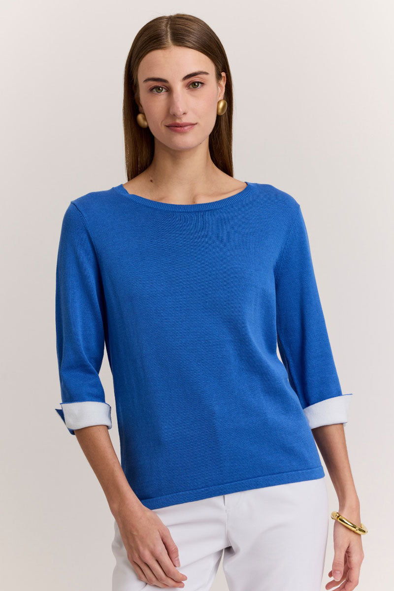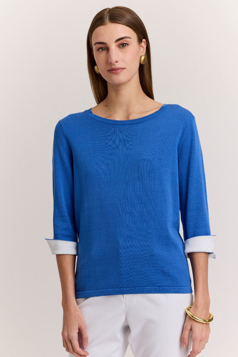 Crafted from a luxurious cotton-silk blend, Hinson Wu sweaters offer a smooth, breathable feel with a subtle sheen and exceptionally soft hand. Finished with refined details, they bring timeless polish to any wardrobe. The Tyler Sweater is a classic crew neck with a contrast color fold back cuff to take it beyond the ordinary.