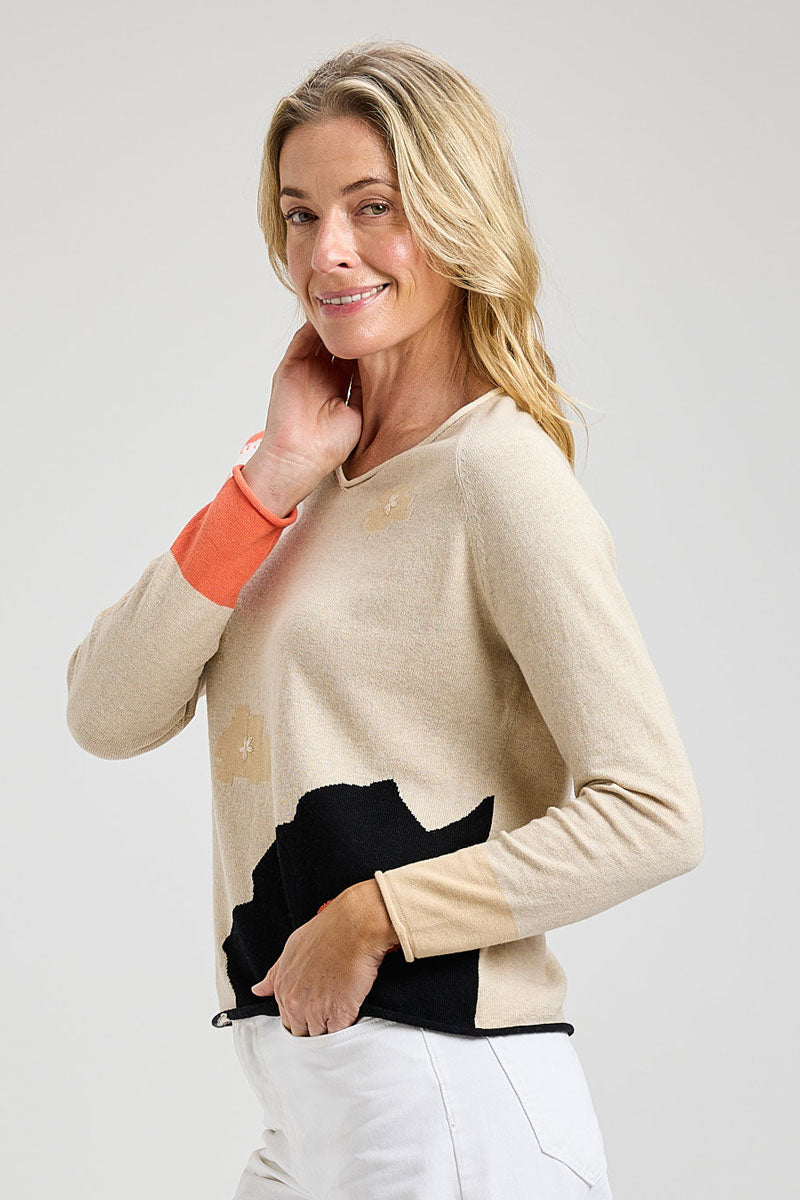 Zaket & Plover combines whimsy and color into every luxury knit they create.  The Garden Pond Sweater has a one of a kind look, mixing intarsia knit large lilies with smaller stylized flowers to create a scene straight out of a spring garden. Seasonless, relaxed and comfortable, it's a joy to wear.
