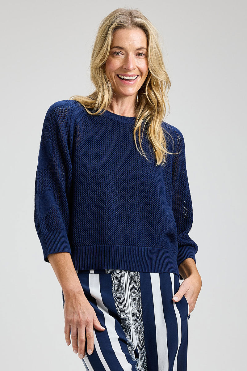 Zaket & Plover brings their signature whimsical details to a new cotton knit. It seems like a simple open weave knit, but look closer: the Hearts on My Sleeve Sweater sports solid knit hearts down the center of this sleeve. Fashioned from luxurious polished mid-weight cotton, it's seasonless, comfortable and subtly fun!