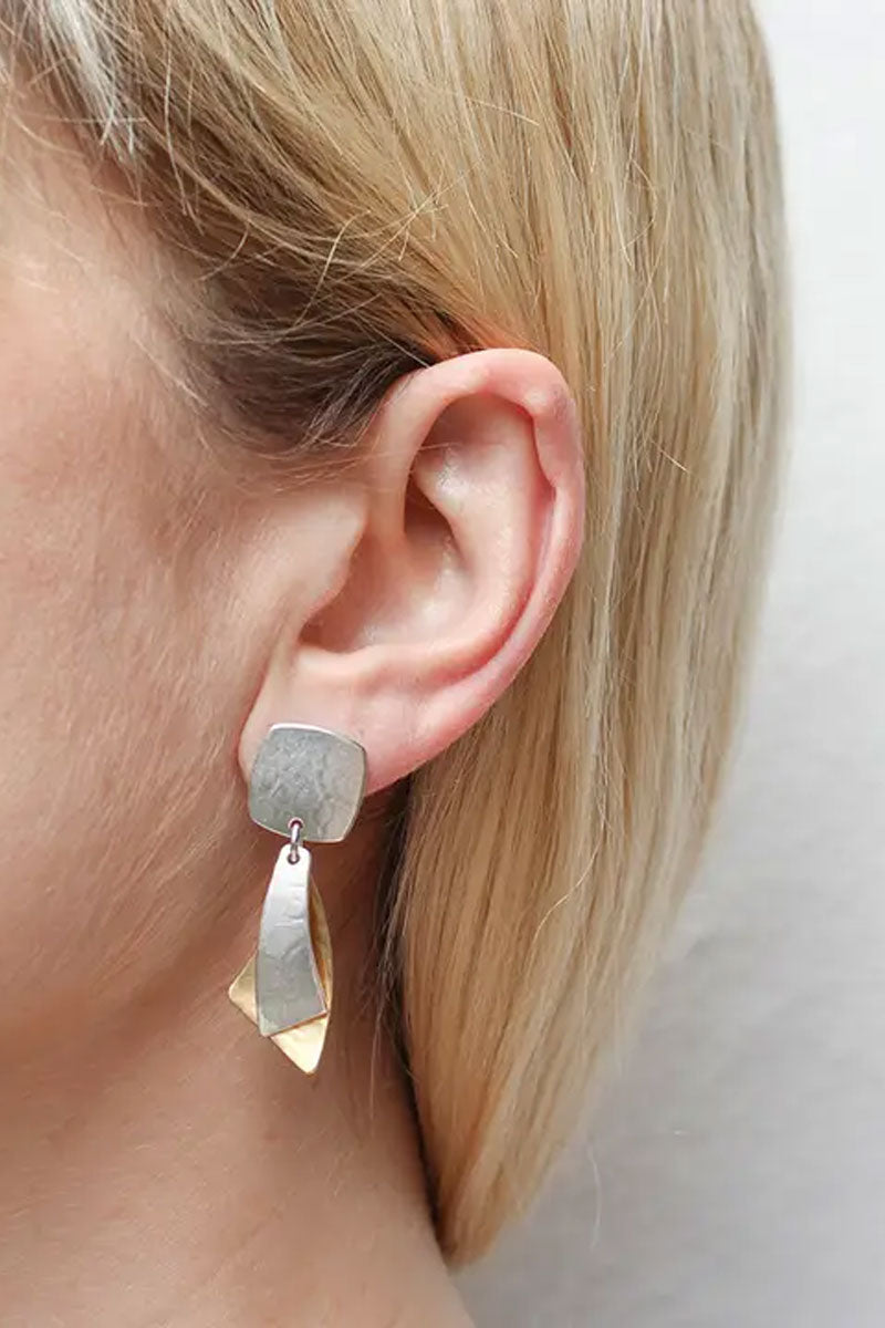 A modern statement with an easy, polished feel. These mixed metal drop earrings feature softly sculpted shapes that add movement and shine without feeling heavy. An effortless finishing touch for everyday or evening.