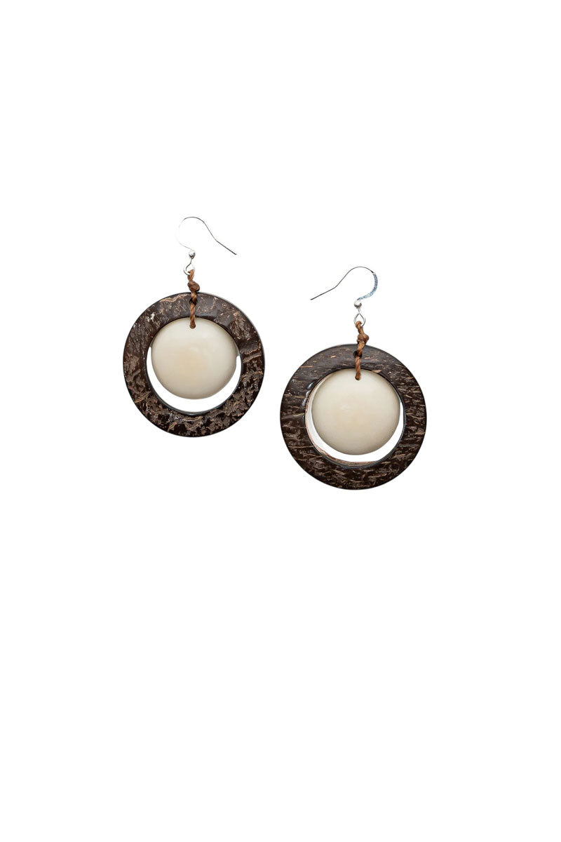Crafted from natural coconut shell with a smooth tagua center, these earrings bring an earthy yet modern touch to your look. Lightweight and comfortable, their bold circular design adds effortless movement and style. A unique piece that blends eco-friendly materials with artisan craftsmanship.