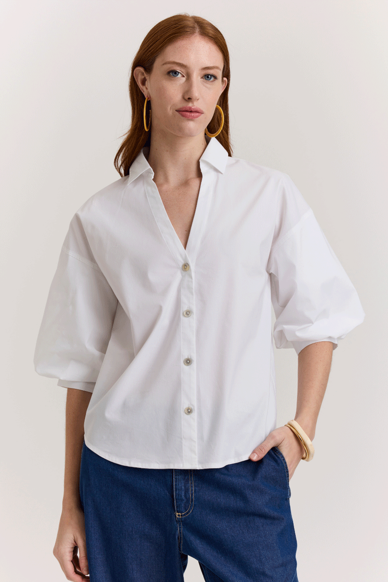 Meet your new wardrobe MVP: the Hinson Wu Lilian Elbow Sleeve Blouse. Built from their beloved Stretch Polished Cotton, this isn't your basic white blouse—it's the sophisticated upgrade you didn't know you needed. The split V-neckline flatters effortlessly, while those charming puffed elbow sleeves add just the right amount of personality. Throw it on with anything and look polished in seconds. Plus, it's machine washable and dryer-friendly, because who has time for fussy fabrics? Everyday elegance, zero drama.