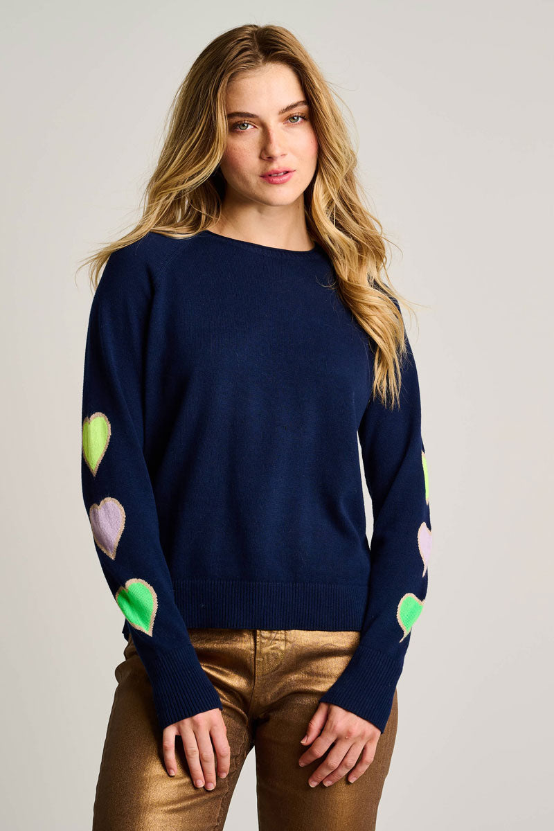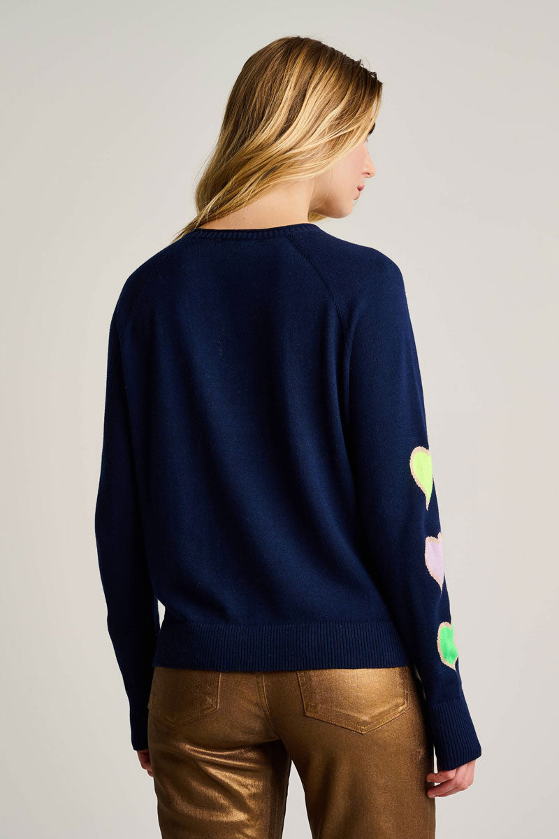 Wear your heart on your sleeve in this soft, streamlined sweater with a signature touch of Lisa Todd whimsy. The Love Affairs Sweater is all about the contrast color intarsia hearts down the sleeves. Relaxed and easy, it's a great knit to curl up in.