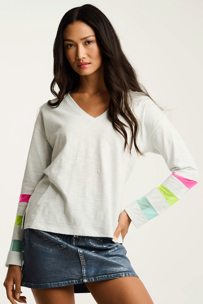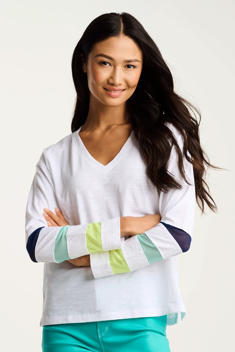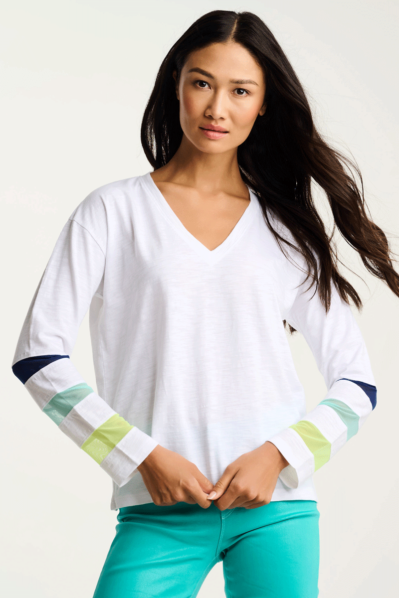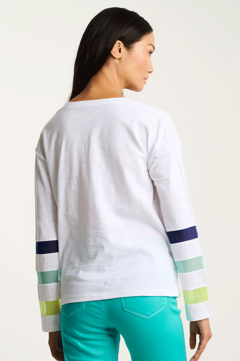 It's time to celebrate; the Mesh Fest Tee is back! Bold and colorful in premium cotton, it's a great light weight tee for spring. It features long sleeves that have colorful, contrasting mesh inserts. It's comfortable, relaxed and so much fun!