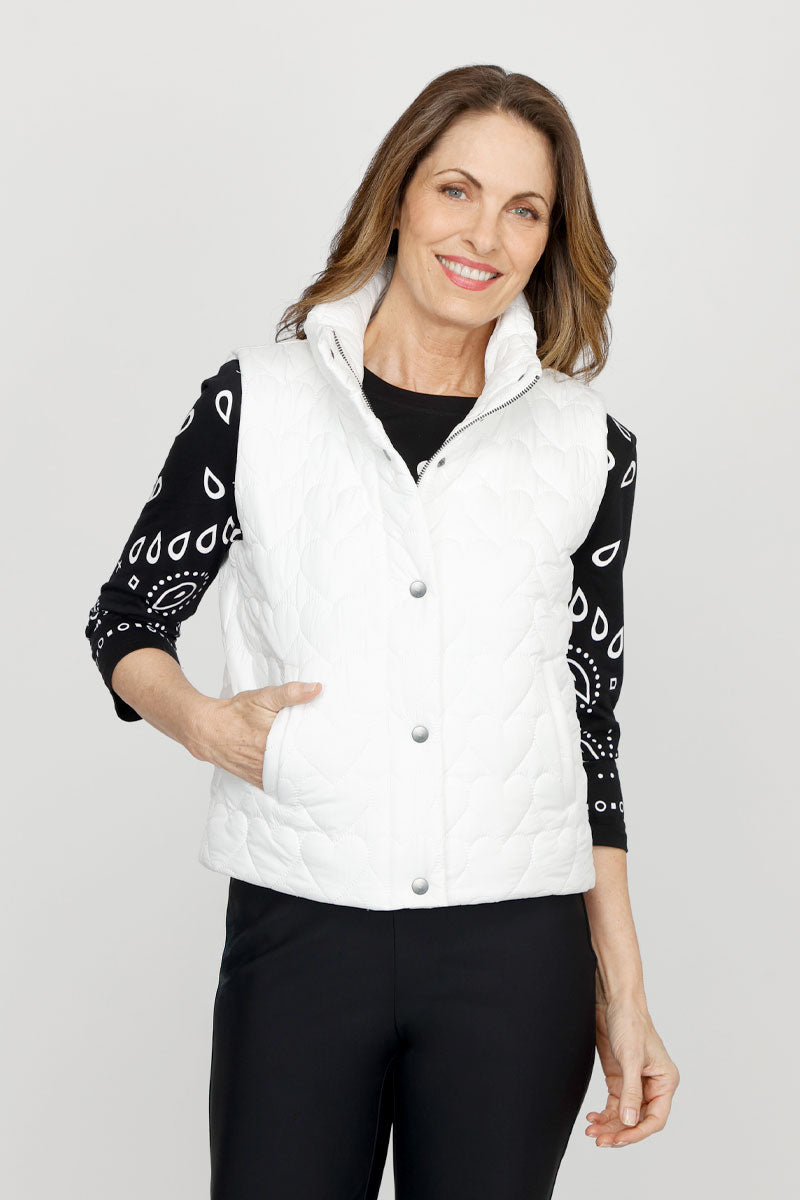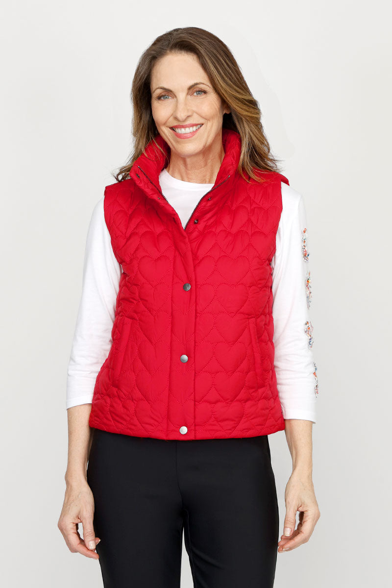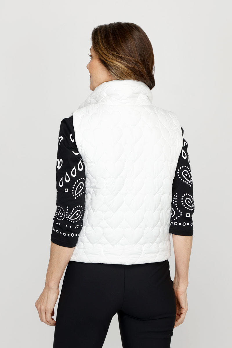 The Boxy Quilted Vest is a versatile layer for stylish warmth! This sporty yet sophisticated vest is made from a stretch cotton knit and is quilted in a heart pattern, for a more whimsical take on a classic.