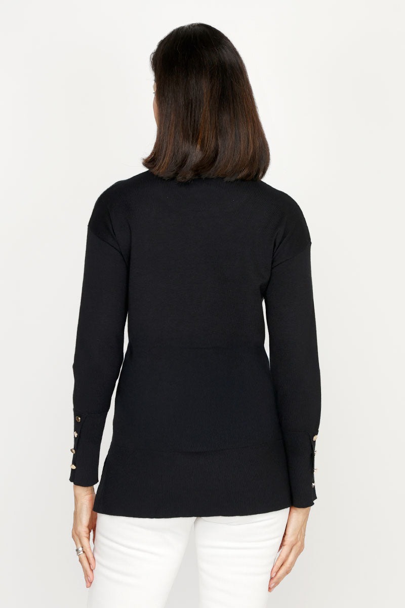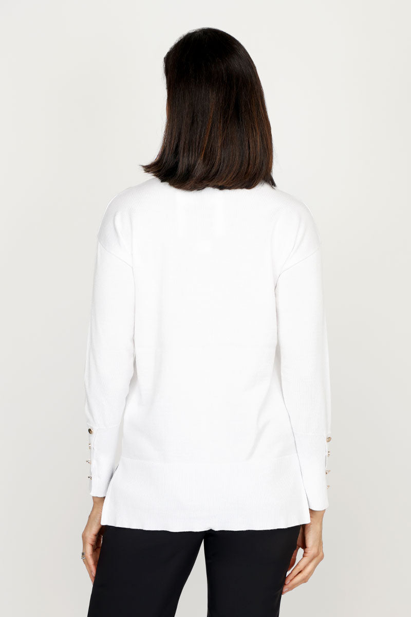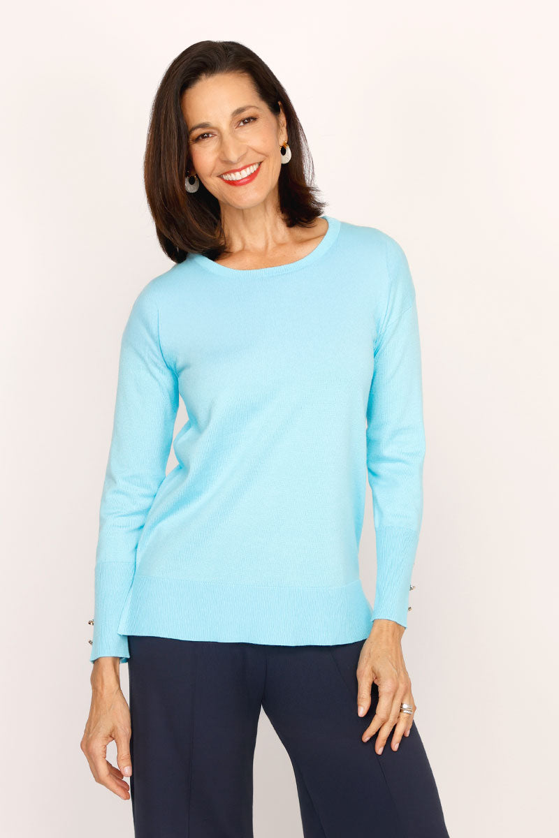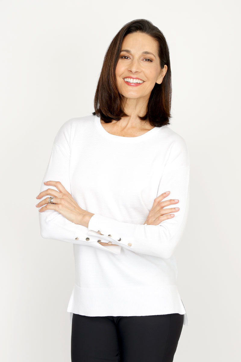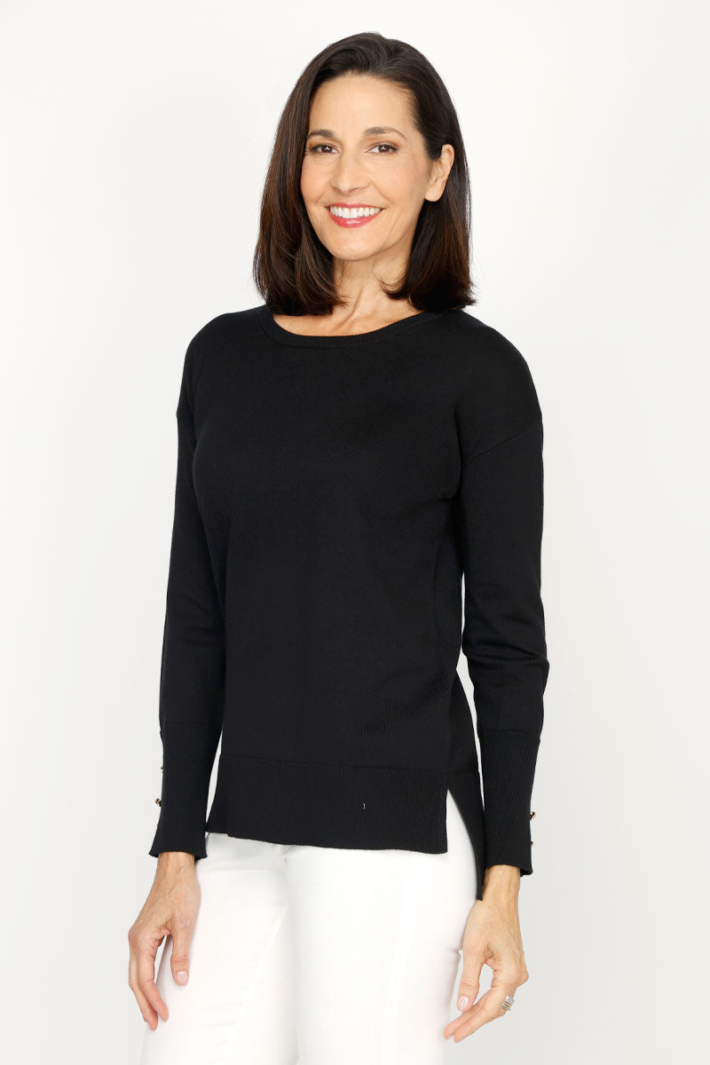 The signature softness of a Metric Knit is unmatched. The Side Trim Sweater with Buttons combines the basic shape of a classic crew neck with a high low hem deep ribbing at the cuff and hem keep the look simple yet elegant. Relaxed and comfortable, it's a great new basic for your wardrobe.