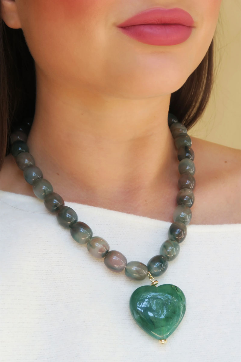 A bold yet polished statement necklace with a modern marbled heart pendant and clean, sculptural lines. Perfect for adding an instant touch of chic impact to both casual and dressed-up looks. Designed to stand alone or layer effortlessly with your everyday favorites.