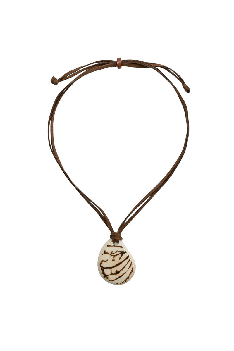 Hand-carved from natural tagua nut, this pendant necklace showcases organic patterns and smooth polished detail. Suspended from an adjustable cord, it’s lightweight, versatile, and easy to style with both casual and dressier looks. A simple yet striking piece that highlights artisan craftsmanship and natural beauty.