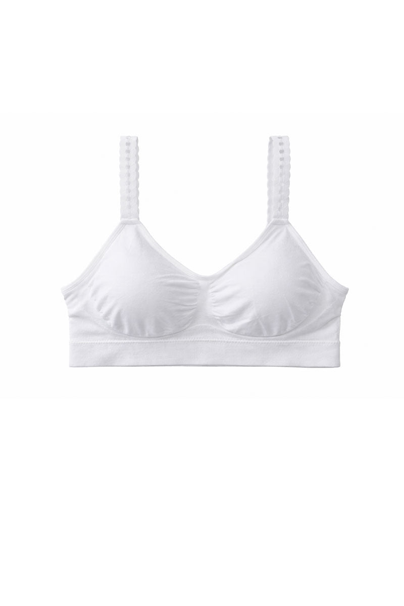 Experience everyday comfort with this seamless bra. Designed with smooth molded cups and soft stretch fabric,the Strap-Its Loops Bra provides gentle support and a flattering, natural shape. The wide underband offers a secure fit, while the loop design straps add a subtle touch of texture. Perfect for all-day wear under your favorite tops.'
