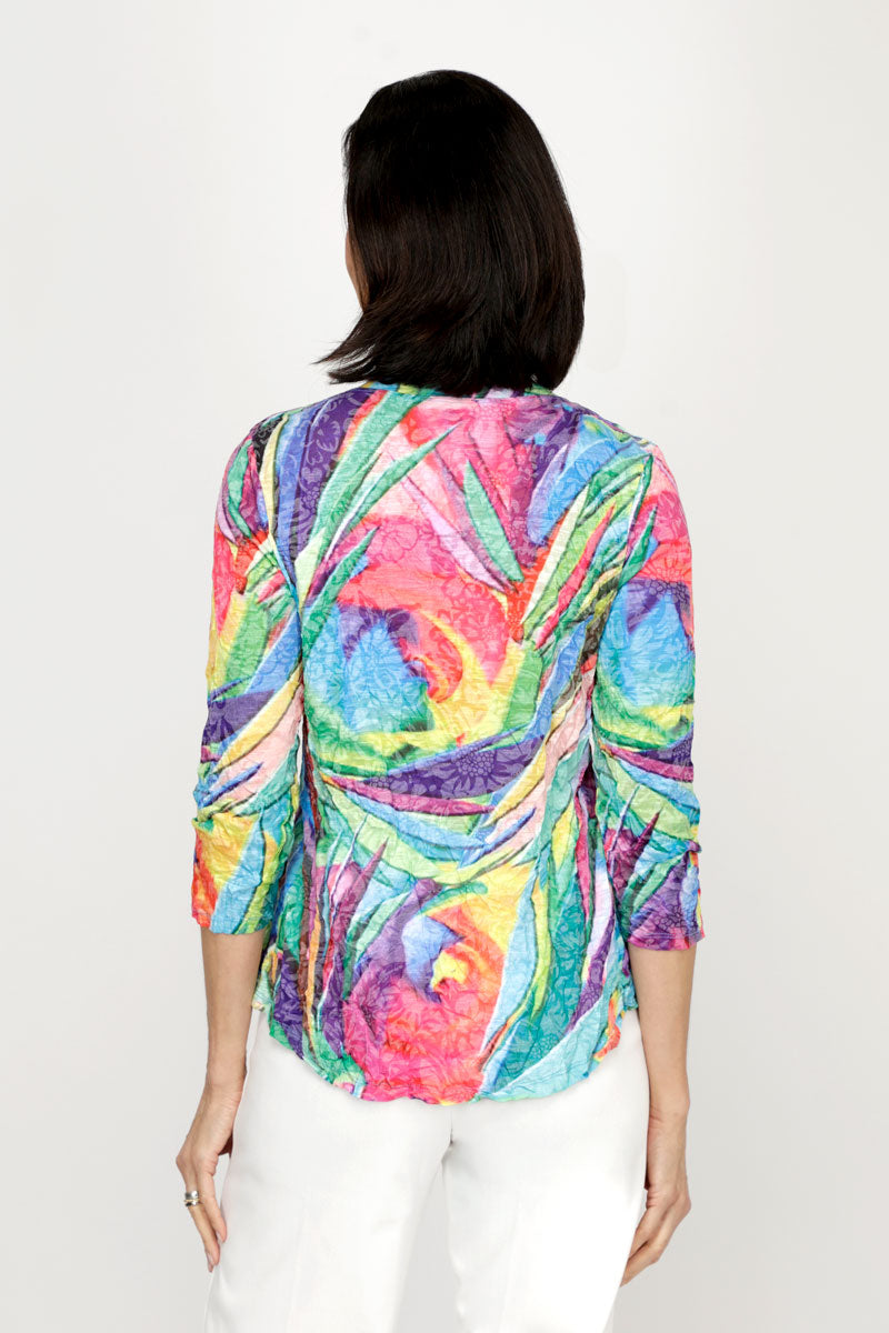 Elevate your everyday wardrobe with this chevron print V-neck that's anything but ordinary. The crinkled fabric strikes the perfect balance—airy enough to keep you cool, textured enough to flatter your silhouette without hugging too tight. Playful geometric patterns pair effortlessly with your favorite basics, making this relaxed-fit essential a go-to piece for endless styling possibilities.