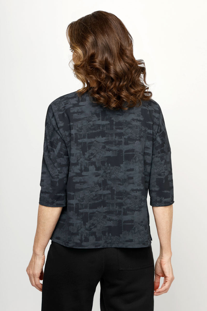 Long live the boxy tee! Comfortable and easy to wear, it adds a bit of edgy cool to the simplest of outfits. Screen printed in a tonal pattern on durable opaque mesh, this soft and stretchy tee drapes beautifully on the body and is made for wearing tucked in or out. Pair with any of our Holland Ave Denim pants or your favorite bottom.