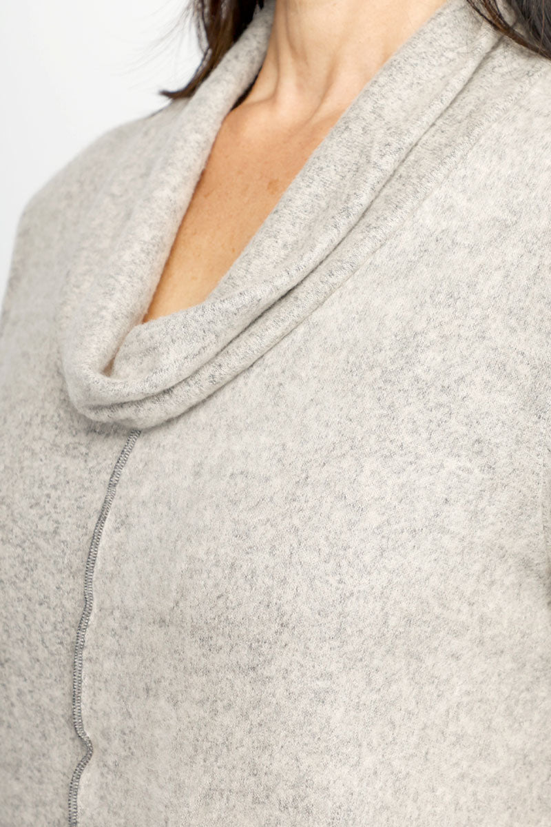Cozy up in the super-soft Knit Seamed Cowl. This long sleeve cowl neck top is cozy and comfortable. The raised center front seam and sewn edges are trimmed in deep gray to add depth and polish to this comfortable top.