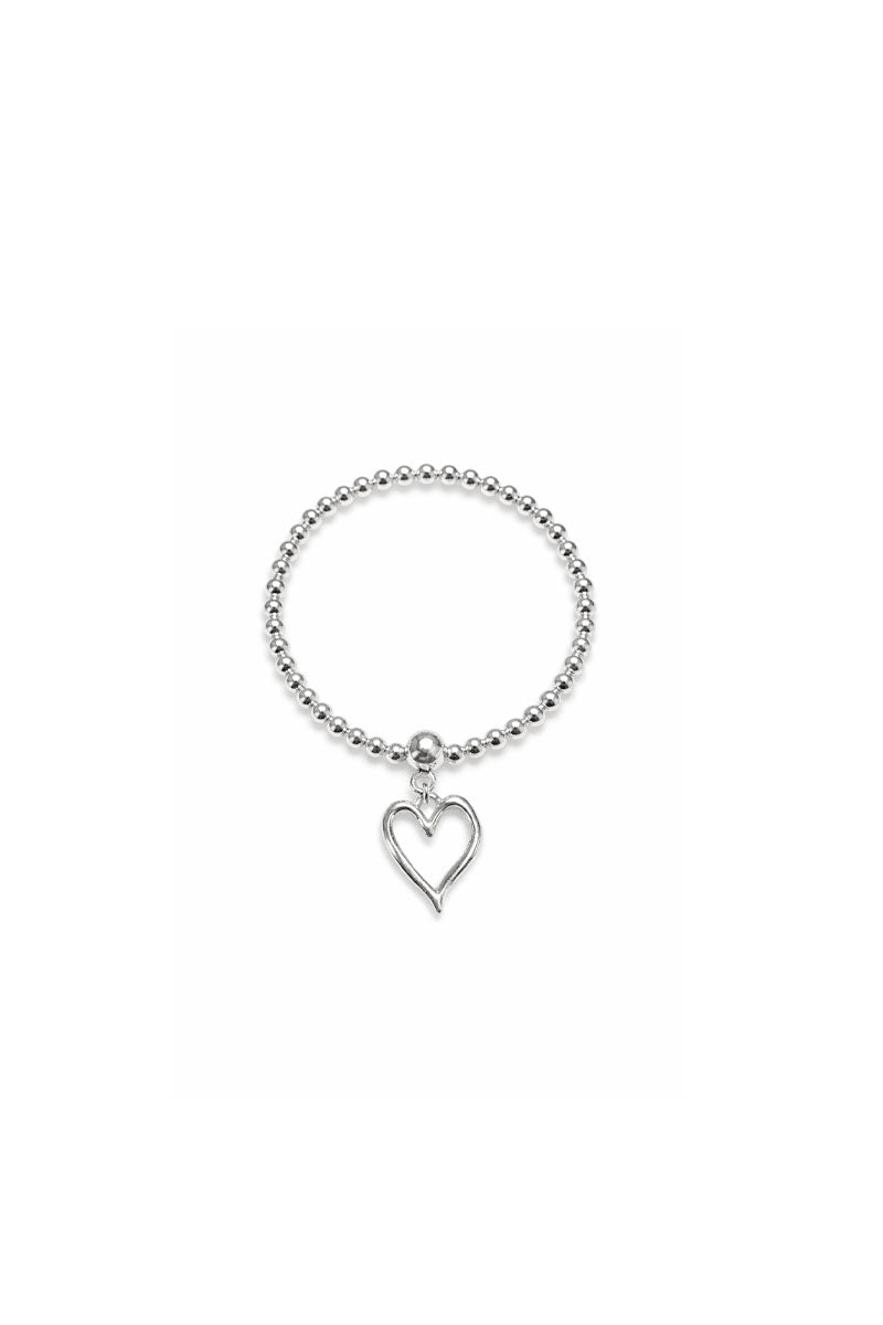A sleek silver beaded stretch bracelet accented with an open-heart charm. Easy to slip on and perfect for everyday wear or layering with your favorite pieces.
