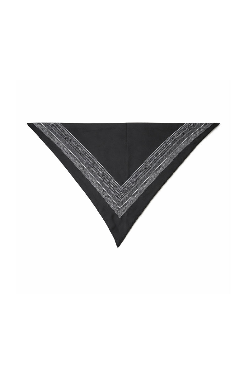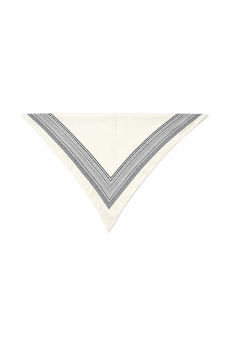A lightweight triangular scarf with a clean, graphic border that frames the shape beautifully. Easy to style around the neck, in your hair, or tied to a bag. Designed for quick, effortless styling with a polished finish.