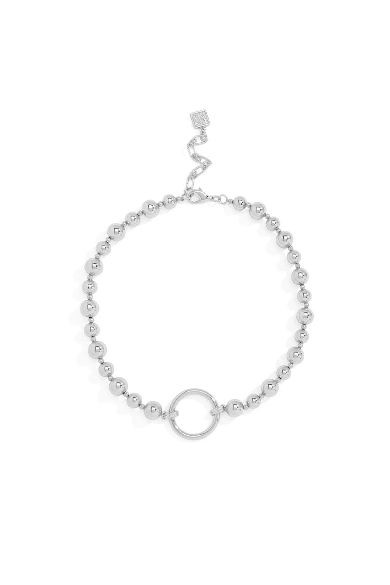 A sleek beaded necklace featuring smooth round accents linked together for a clean, modern look. The open circle centerpiece adds a striking focal point, and the adjustable chain lets you choose the right fit. Wear it solo for simple sophistication or pair it with other pieces to build a polished layered style.