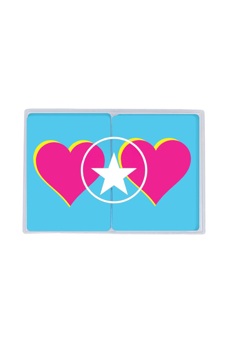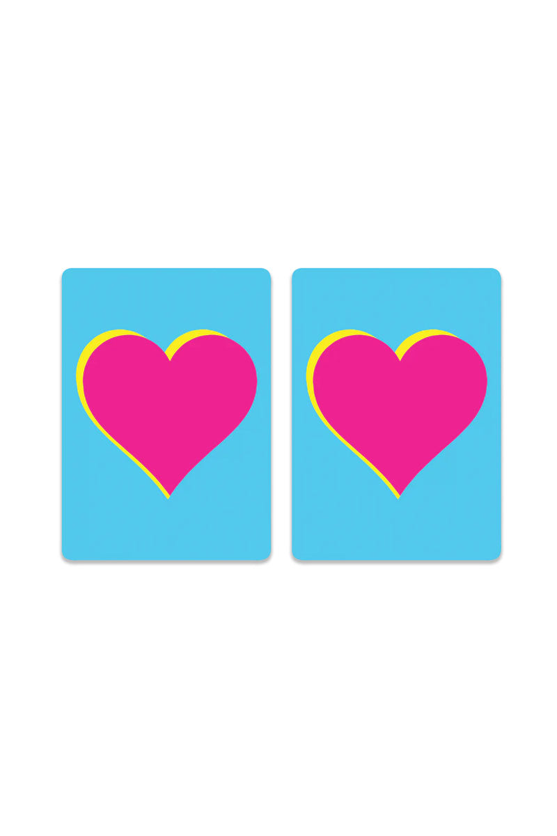 This set includes two packs of durable PVC playing cards designed for smooth shuffling and effortless gameplay. The bright heart-themed design adds a fun, cheerful touch to every hand, making them perfect for Canasta, card nights, or travel play. Long-lasting, easy to clean, and made to glide beautifully in your hands.