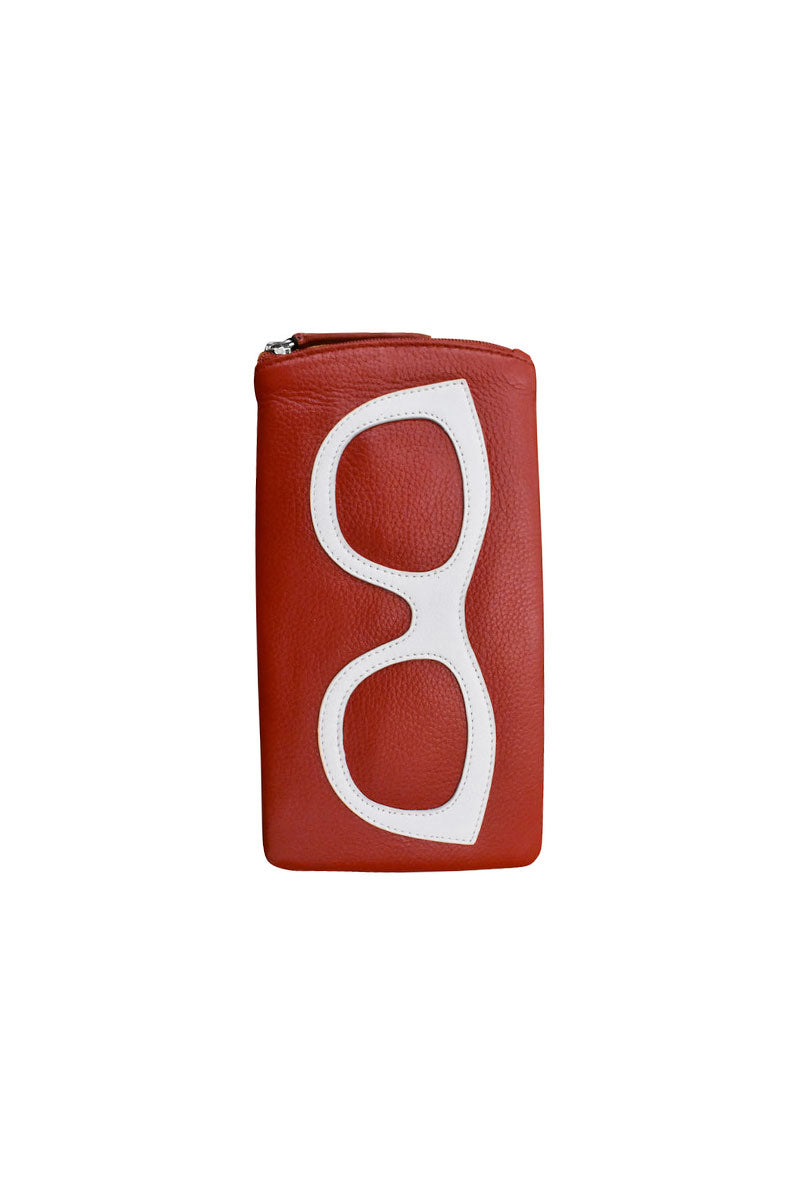The Ili Eyeglass Case is a colorful leather eyeglass case with side zipper and back zip pocket. And it makes a terrific gift! You'll never have to hunt for your glasses again -- you'll automatically know where they are when you open your purse!