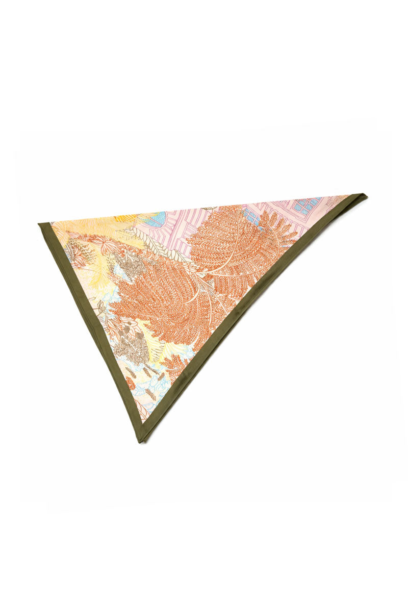 A lightweight triangular scarf with bold floral print and clean border that frames the shape beautifully. Easy to style around the neck, in your hair, or tied to a bag. Designed for quick, effortless styling with a polished finish.