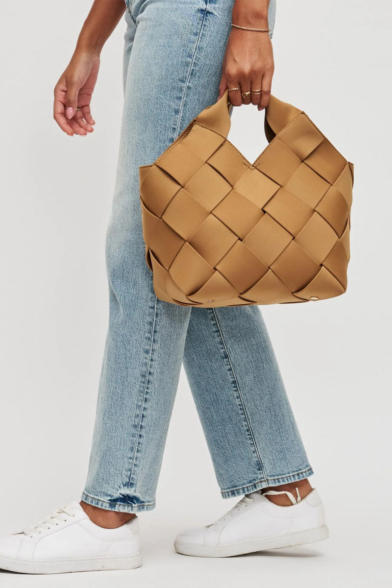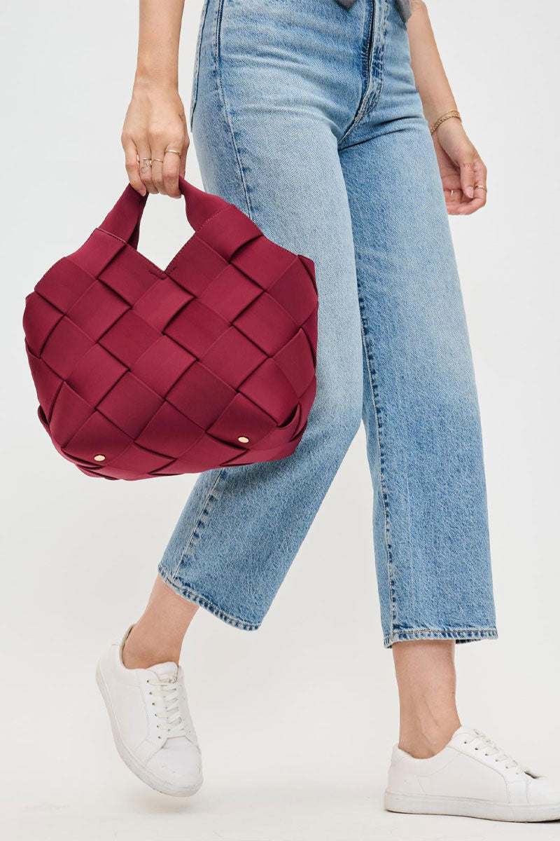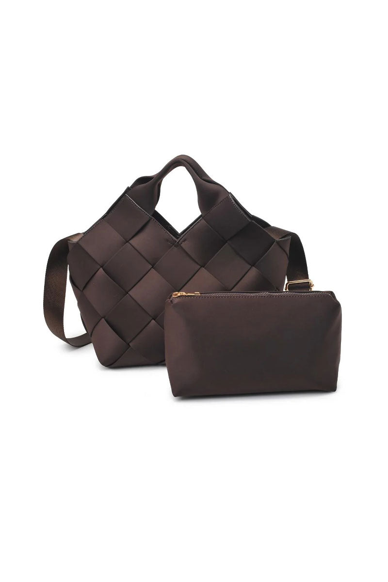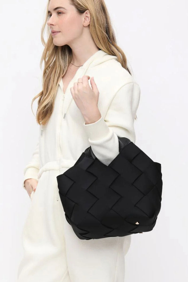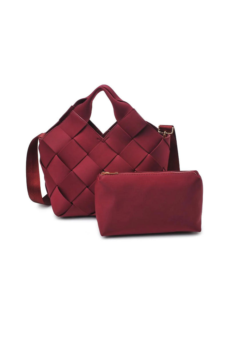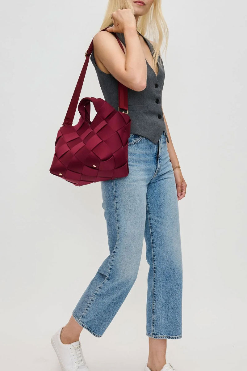 This woven handbag set blends modern texture with everyday function. The main bag features a structured, basket-style design with wide interlaced panels that create a soft yet sculptural look. A comfortable top handle and adjustable crossbody strap offer multiple ways to carry it, while the spacious interior easily holds daily essentials.
