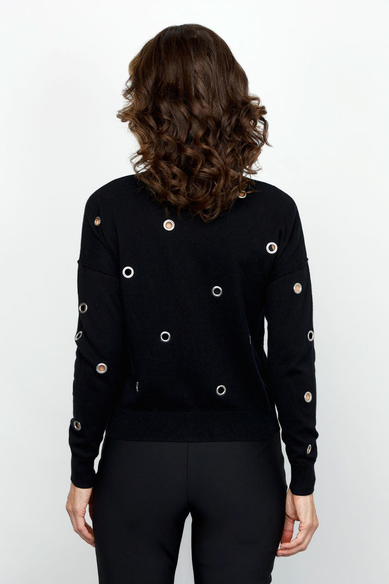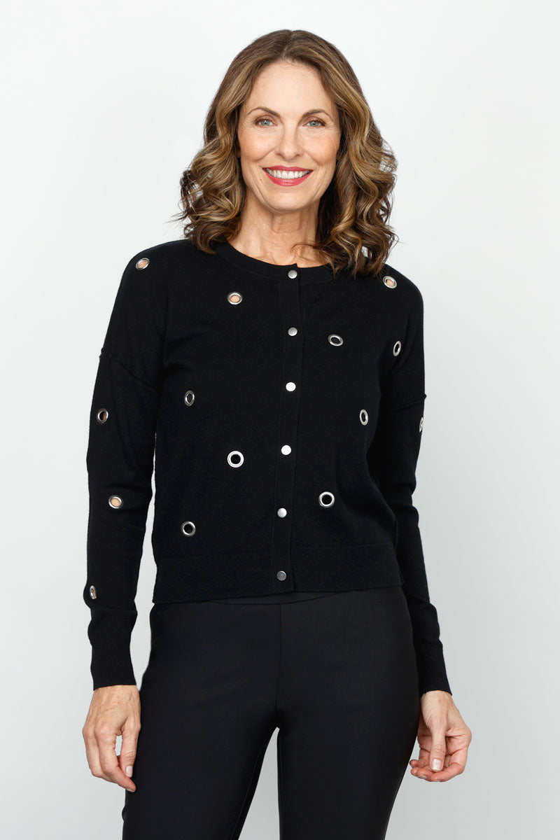 Sweeten sweater season in a soft snap front cotton cardigan with grommet detail throughout. Refined yet relaxed, it's a great way to dress up in comfort - and it's definitely a conversation starter!