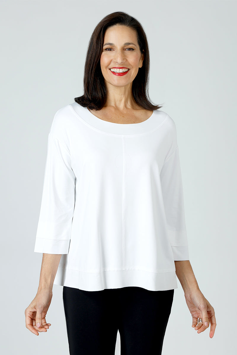 Sympli Spring '25 has arrived! The Splice Double Cuff Top continues the Sympli tradition of comfort and attention to detail. Featuring center seaming in front and back with inset bands and a double layer cuff and subtle raw edges, this versatile top goes from day to night with just a change of accessories. Perfectly packable, it's ready for wherever life takes you!