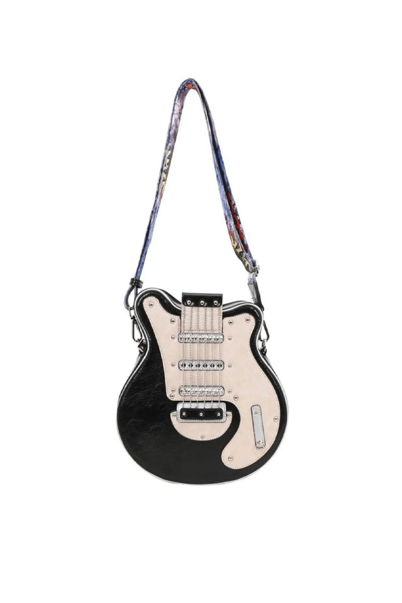 A statement-making guitar-shaped crossbody featuring bold detailing and a detachable shoulder strap. Compact yet eye-catching, it adds instant personality to any look while keeping your essentials close at hand. Lightweight and fun, it is the perfect finishing touch for casual outfits or standout moments.
