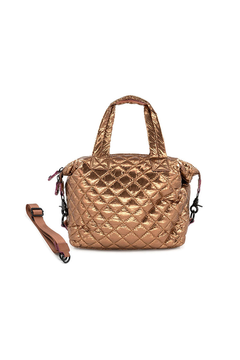 Like it's mini version, The Medium Quilted Convertible Handbag is ultra light weight and versatile. The quilted bag has a removable shoulder strap and you can alter the shape of the bag by clipping the top clip to the bottom loops.