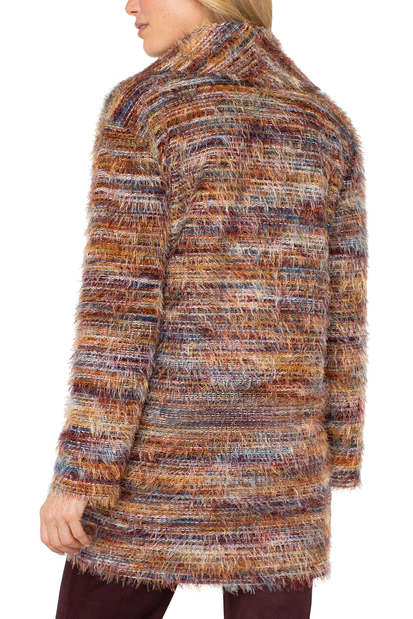Is it a cardigan or is it a coat?  The answer is: both!  Fabricated in a textured feather knit in multi tones, this mid-length hybrid features a soft shawl collar and hidden pockets for functionality and flair.