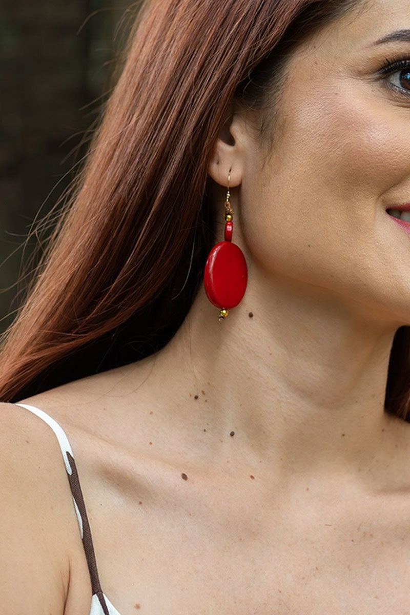 Crafted from hand-carved tagua nuts, these drop earrings showcase a smooth, polished finish with natural appeal. Lightweight and comfortable, they’re perfect for all-day wear. A refined accessory that blends artisan craftsmanship with eco-friendly design.