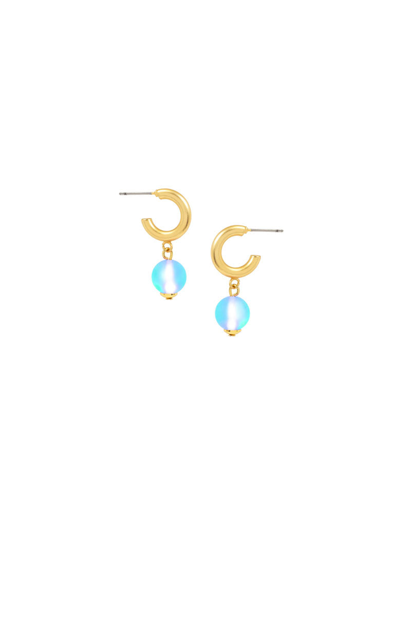 Petite hoops with a soft, iridescent bead drop that catches the light from every angle. Lightweight and easy to wear, they add just the right amount of glow to your everyday looks. A subtle statement that pairs effortlessly with your favorite necklaces and layers.