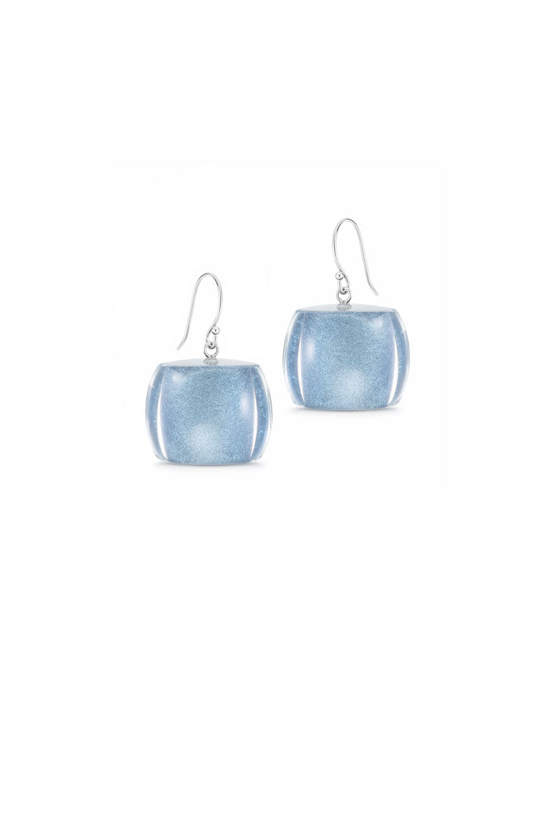 A fresh, modern take on everyday shine, these drop earrings feature softly sculpted, cushion-shaped resin with a luminous, glass-like finish. The subtle shimmer within adds depth and dimension, catching the light with every movement.