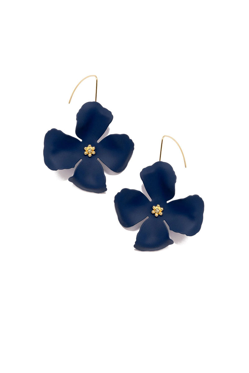 The Flower Threader Earrings feature sculpted petal-shaped flowers with a soft matte finish and delicate metallic centers. Lightweight and eye-catching, they bring an artful, feminine touch to any outfit.