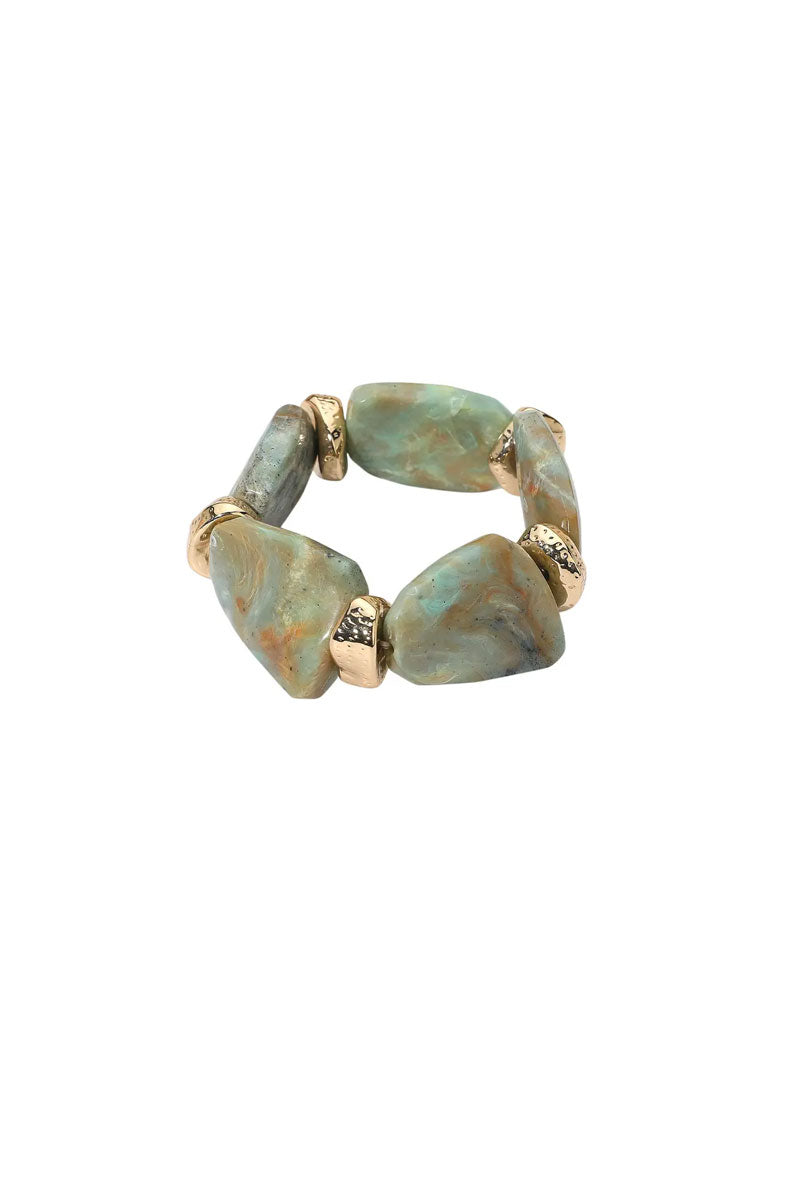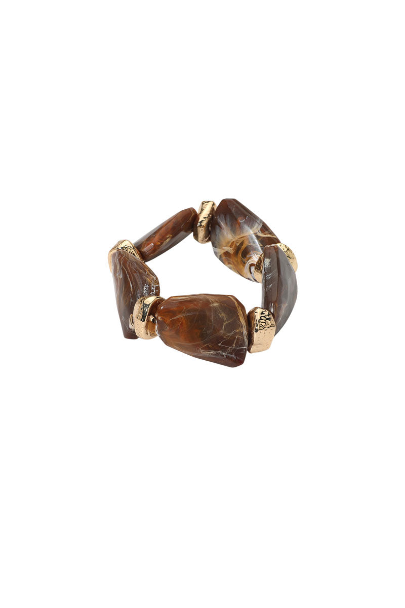 Earthy and artful, this marbled stone bracelet features bold, sculpted beads separated by textured gold-tone accents. Each stone’s organic shape and subtle variation make it truly one of a kind. A striking accessory that adds natural sophistication to both casual and dressed-up looks