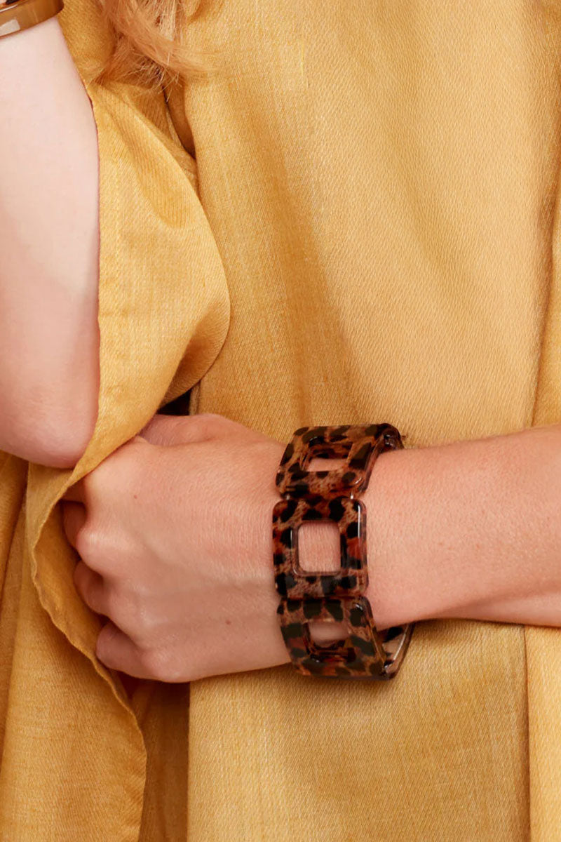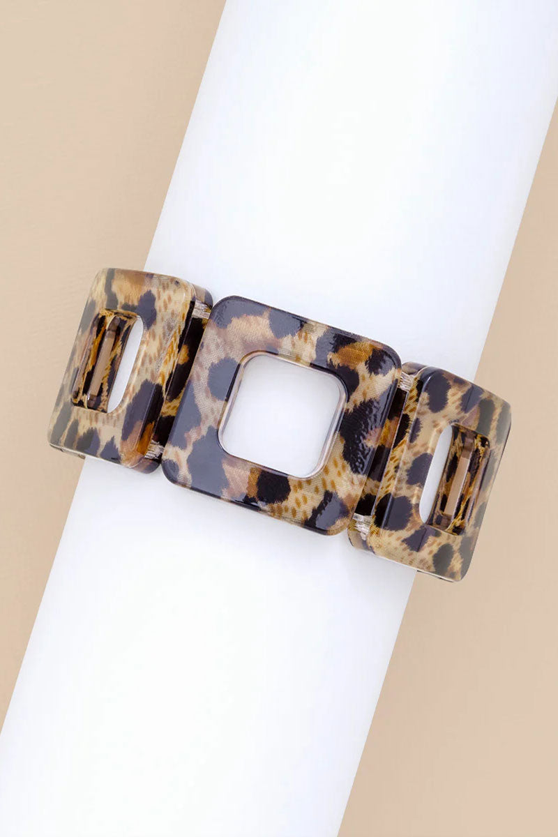 This bold stretch bracelet features open square resin links in a modern geometric design. Lightweight and comfortable to wear, it adds an effortless touch of style and dimension to any look. Perfect for stacking or making a statement on its own.