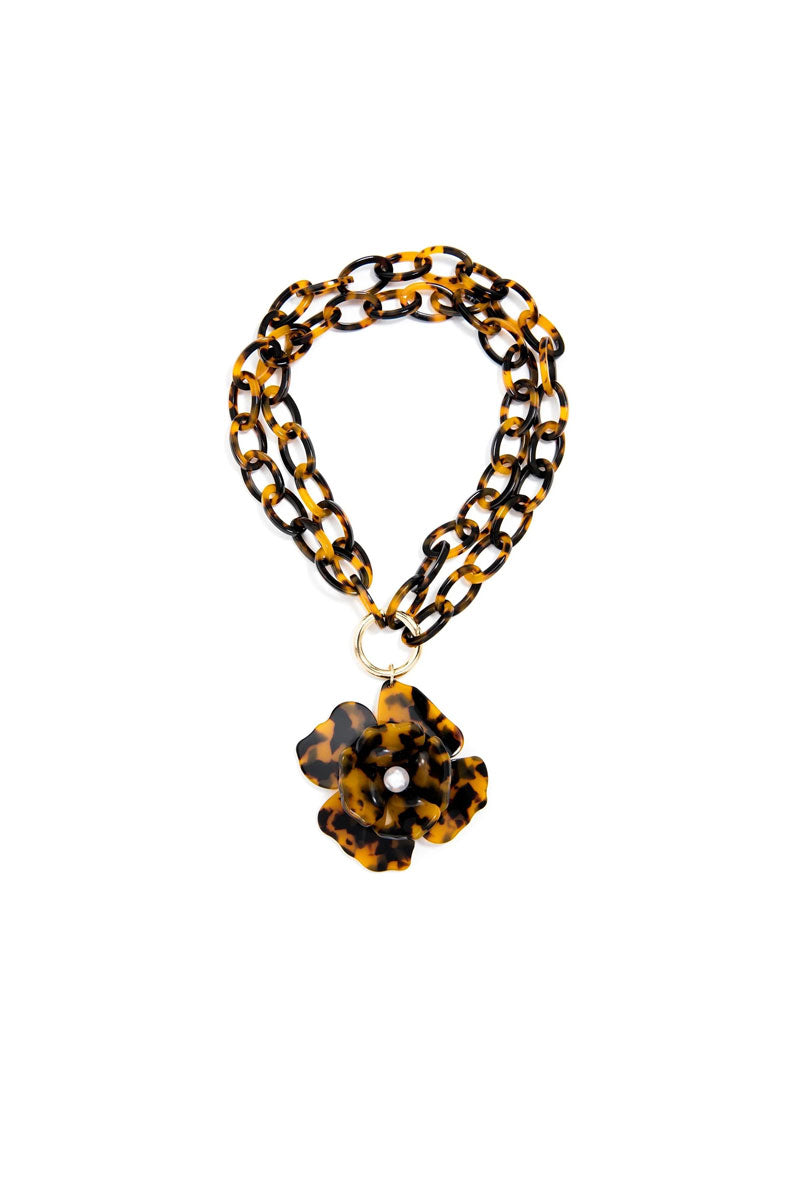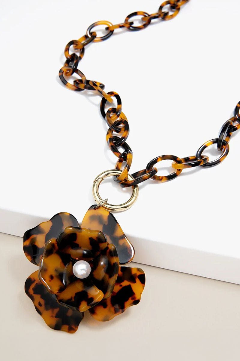 The Tortoise Blooming Necklace features interlocking links and a sculpted flower pendant with a smooth pearl-like center. Its modern shape and lightweight design make it an easy way to add texture and elegance to any look. Perfect for dressing up everyday outfits or complementing an evening ensemble.