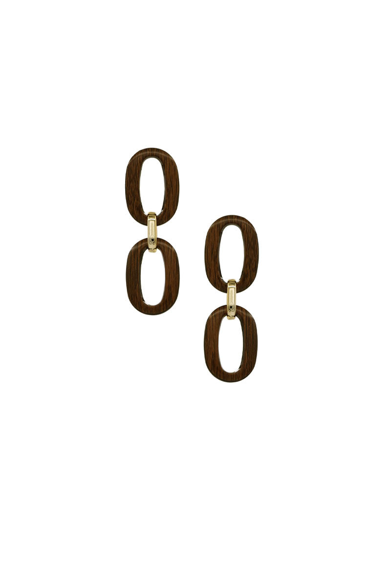 These double-link earrings blend natural texture with modern design. The lightweight wooden ovals are connected by sleek metallic links, creating a balanced mix of organic warmth and contemporary edge. Perfect for adding a refined yet relaxed touch to any outfit.