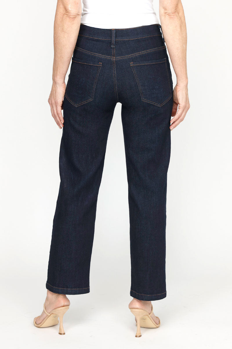 Introducing the new girl on the block: Jenny! Lolo Luxe has fashioned the classic 5 pocket straight leg in super-soft premium denim - tailored especially for the Evelyn & Arthur woman. This mid-rise jean is higher in back for complete rear coverage and has a narrower waistband, so it sits comfortably without rolling with just the right amount of stretch for comfort. The season-less mid-blue wash goes with you everywhere!