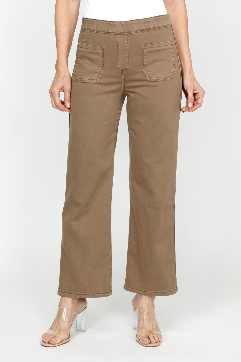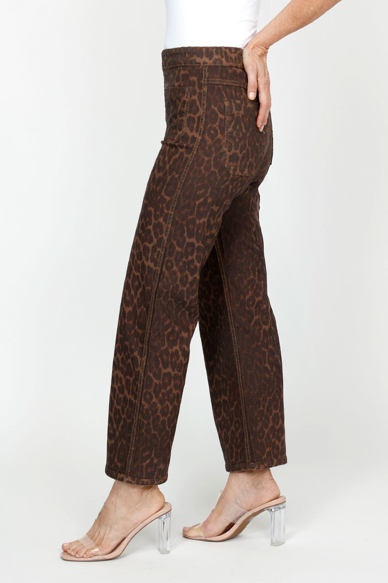 A great new pull on wide leg pant that does double duty in a bold animal print or a rich mocha, the Animal Wide Leg Pant elevates the casual and is completely reversible. An elastic waist and perfectly placed patch pockets combine comfort and style into a pant that works effortlessly anywhere, anytime.