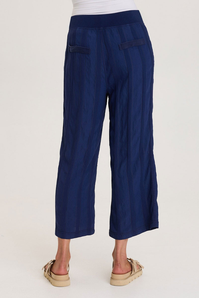 If you love Wearables, you'll love XCVI (Wearables are made by XCVI). XCVI uses a more elevated and elegant approach to active leisure using luxurious fabrications to create a laid back statement look. The Carruth Crop Pant features a textured vertical stripe and slightly flared leg openings with front pockets. This pull on, easy-wear crop pairs beautifully with the coordinating Adgar Tee.