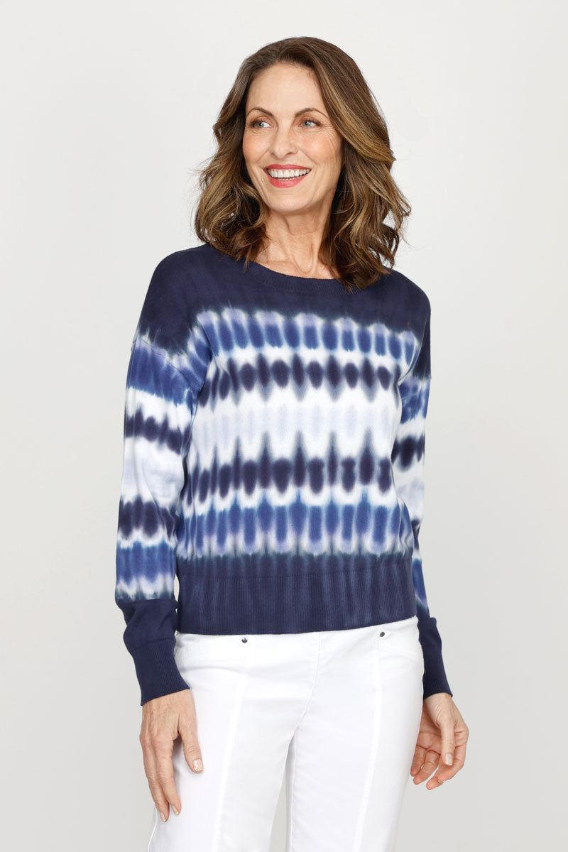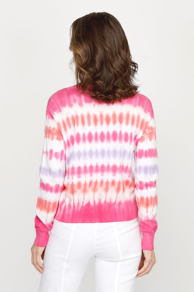 A sweater to dye for! There's something so special about the Sound Wave Tie Dye Sweater. This carefully screened cotton knit refines the boho print in soft cotton. Rib detail and a relaxed fit adds a bit of polish to this whimsical print.