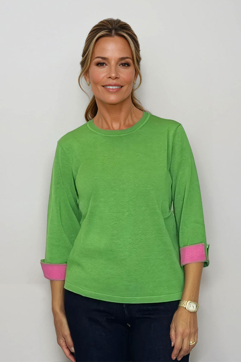 Crafted from a luxurious cotton-silk blend, Hinson Wu sweaters offer a smooth, breathable feel with a subtle sheen and exceptionally soft hand. Finished with refined details, they bring timeless polish to any wardrobe. The Tyler Sweater is a classic crew neck with a contrast color fold back cuff to take it beyond the ordinary.
