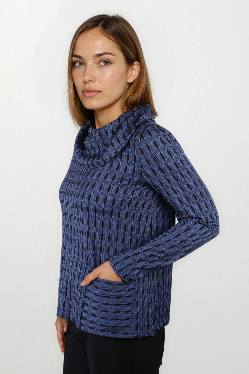 The Newport Bellevue Tee plays with directional stripes to create a fun and whimsical top from a simple cowl neck silhouette. 2 front patch pockets up the cozy and comfortable quotient.