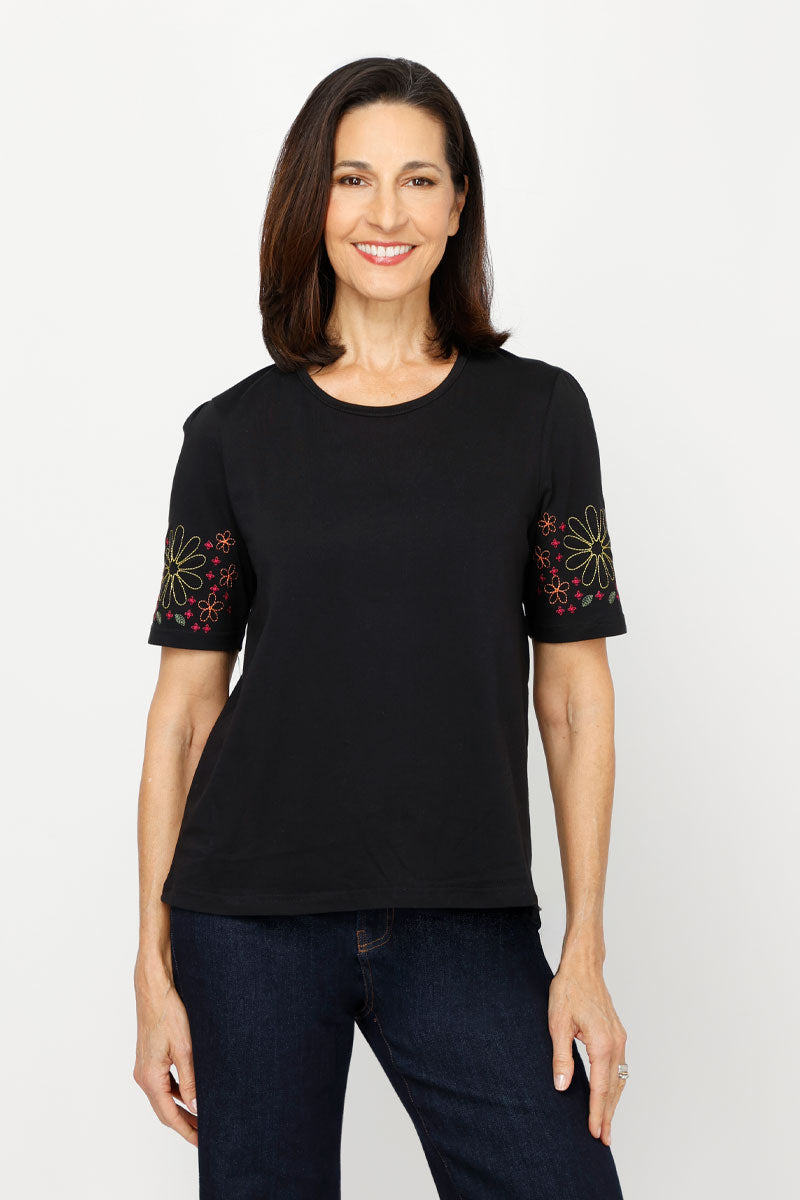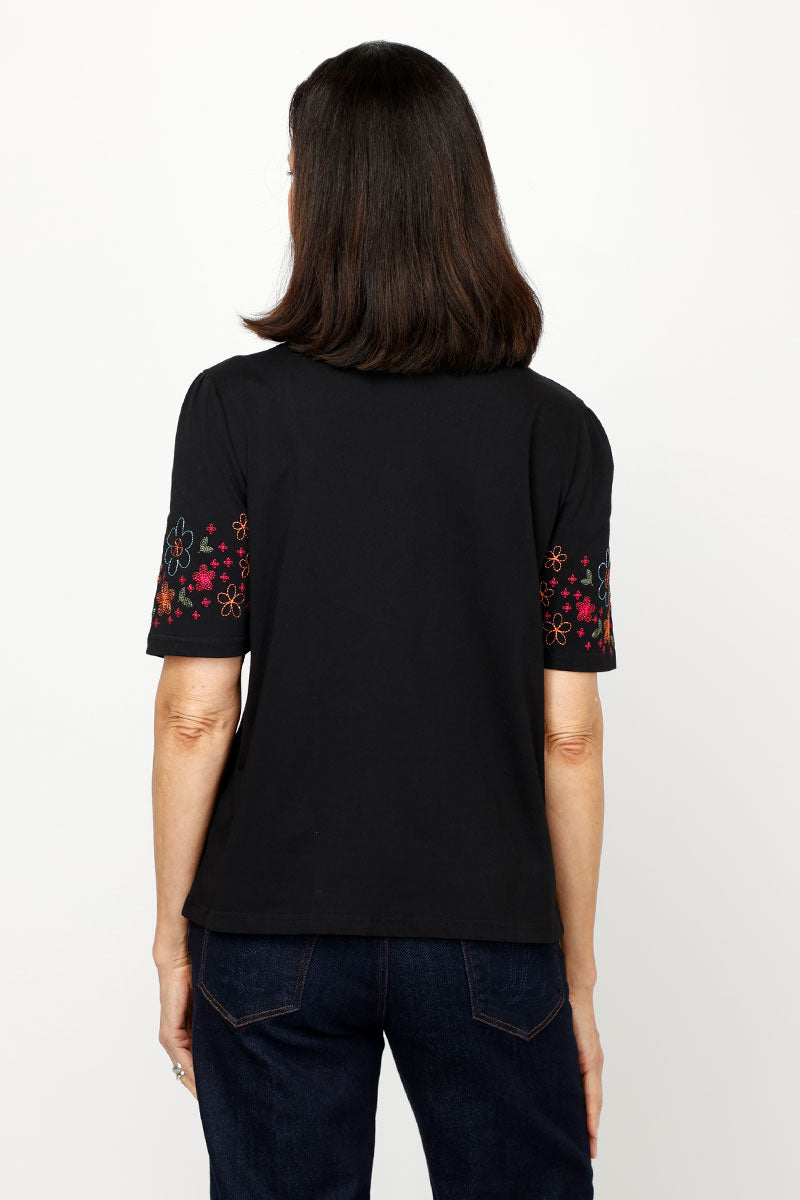 Lolo Luxe Embroidered Floral Puff Sleeve Tee