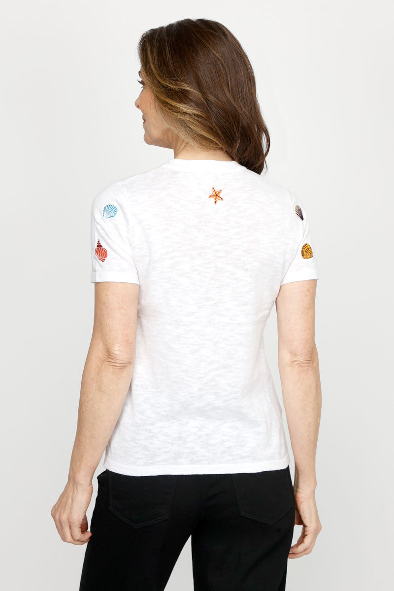 Channel laid-back seaside vibes in this lightweight knit tee, crafted from a breathable cotton-linen blend that keeps you cool on warm days and layers comfortably when temperatures dip. Bright, sea-inspired embroidery adds a whimsical pop of color to the flattering fitted silhouette, giving your everyday look a hint of nautical charm. From sun-soaked beach outings to casual weeknight plans, this playful staple moves effortlessly with your schedule.