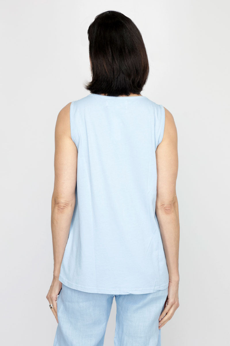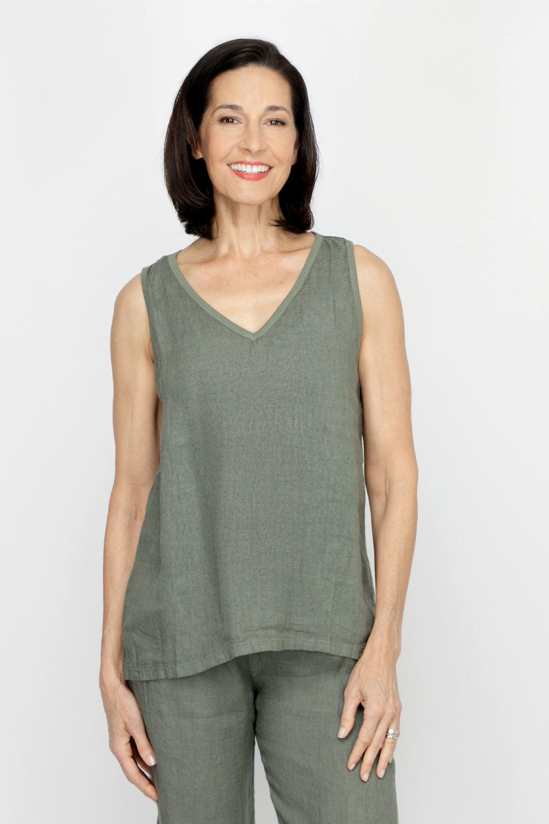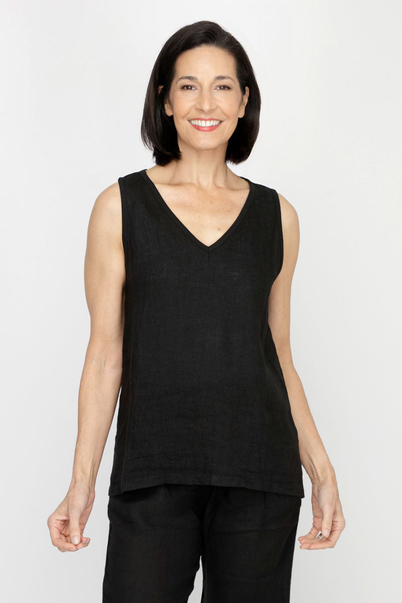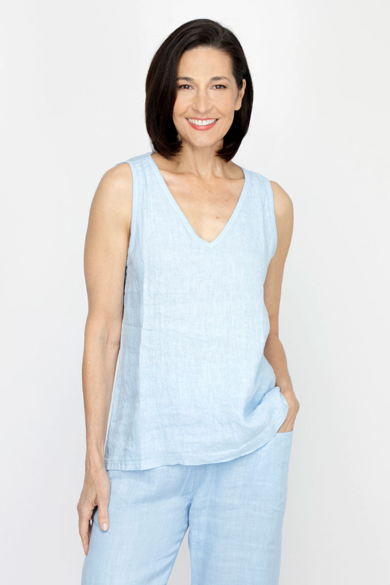Meet your new warm-weather best friend—a sleeveless tank that's part linen, part cotton, and entirely versatile. The front flaunts breathable linen while the back keeps things cool with soft cotton. With its flattering V-neck and relaxed silhouette, this tank moves with you whether you're tucking it in or letting it flow free. Layer it, style it solo, or pair it with our Linen Pocket Pant for effortless, breezy elegance. Simple, comfortable, and ready for anything.