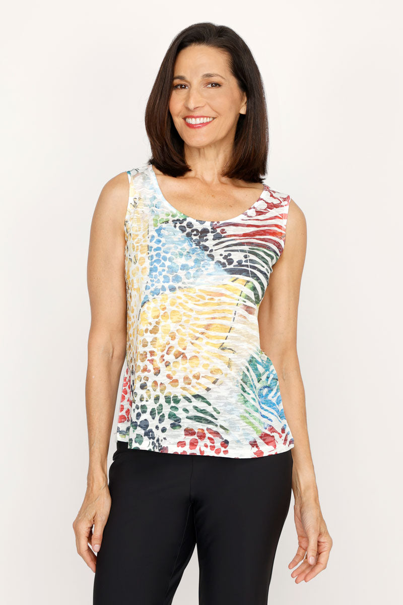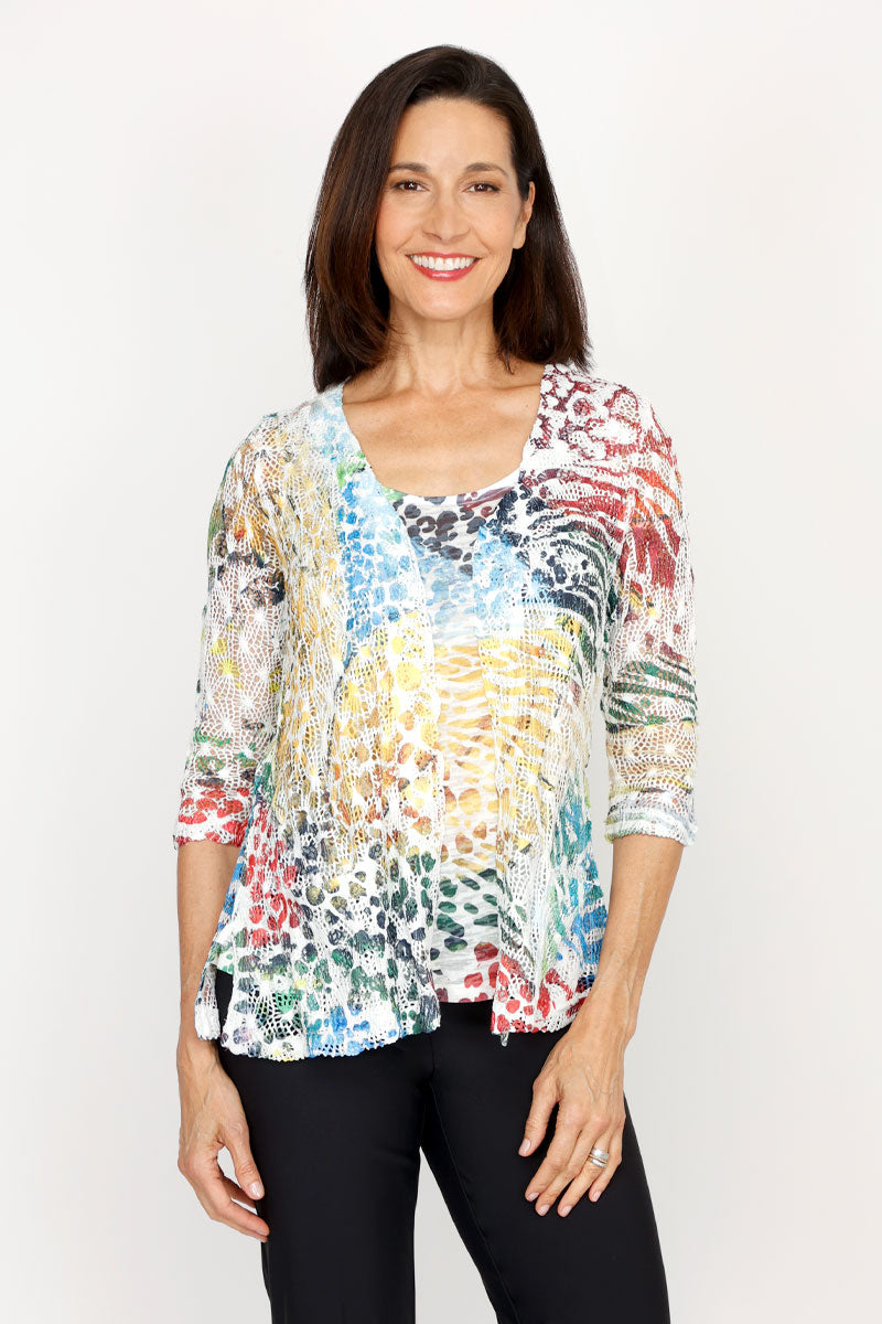 A new take on the twin set, the Palms Cardi Set is lightweight, versatile and the perfect twin set for warmer weather.  The relaxed scoop neck tank pairs beautifully with the open-weave draped topper.  Wear each piece separately to add some pop to your wardrobe.
