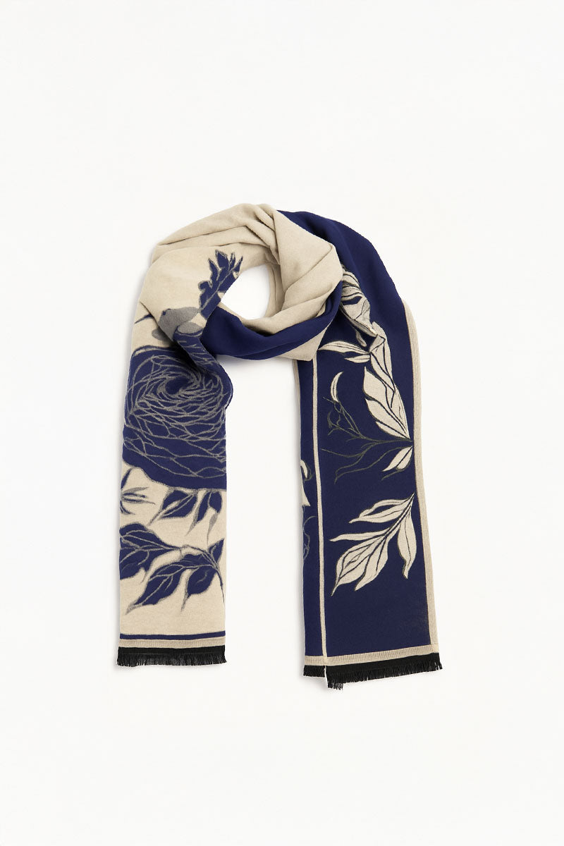 This reversible scarf features a bold floral design that adds a touch of artistry to any outfit. Crafted from a soft, lightweight knit, it drapes beautifully whether worn loose, wrapped, or as a shawl. A chic way to stay cozy while making a statement.